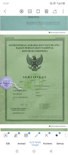 Foto: Salah satu sertipikat terbitan tahun 2020 yang titik koordinatnya bergeser dan tidak berada pada lokasi objek tanah sebenarnya.